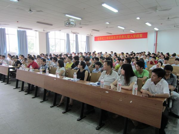 典礼在国歌的奏响中拉开了序幕。首先由院长聂长明老师致辞。在聂长明老师的致辞中,主要介绍了ok138cn太阳集团的基本情况,给同学们大概地描述了大学生活,并宣布了大学里的奖惩制度,还表达了对新生的期待,并欢迎同学们来到化工学院进行深造。随后,由我院优秀青年教师代表林英武老师发言,他详细地介绍了化工专业方面知识,对新生寄予了厚望。接着学生代表梁永昌同学发言,他讲述了自己在大学里的学习和生活经历,鼓励新生努力奋斗。最后新生代表赵亚发言,他提议新生们好好把握大学时光,共创美好未来。典礼在校歌的合唱声中宣告结束。