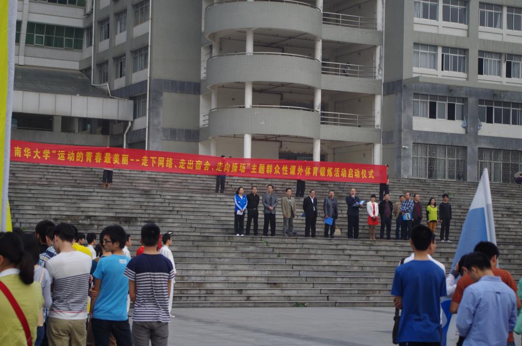 为贯彻党的十八届三中全会关于“强化体育课和课外锻炼,促进青少年身心健康、体魄强健”的精神,我校于4月12日上午,在南华广场举行了“运动的青春最美丽——走下网络、走出宿舍、走向操场”主题群众性课外体能锻炼活动启动仪式。衡阳市团市委副书记邓明君,校党委书记邹树梁、校长文格波等学校领导,各学院党委副书记、团委书记及1000余名学生代表参加了此次启动仪式。启动仪式由副校长刘升学主持。