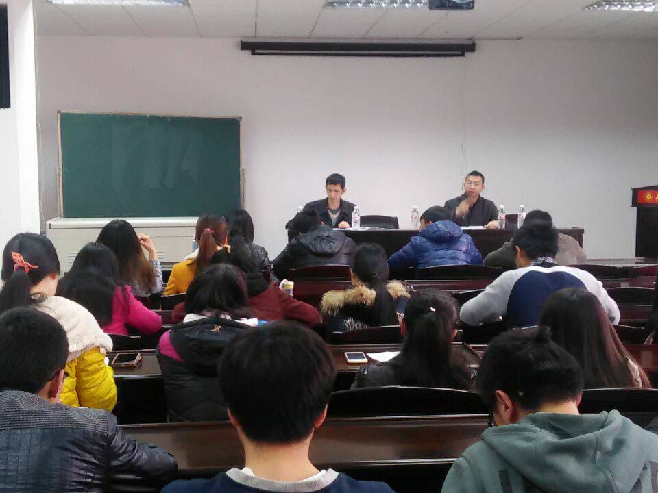 3月19日下午4:30,ok138cn太阳集团于九教411会议室召开2014—2015春季学期第一次团干会议,ok138cn太阳集团党委副书记彭建南、学工室主任任辉、14级新生辅导员谢芹、学院全体团学干部及13级、12级、11级各班班长团支书到会。