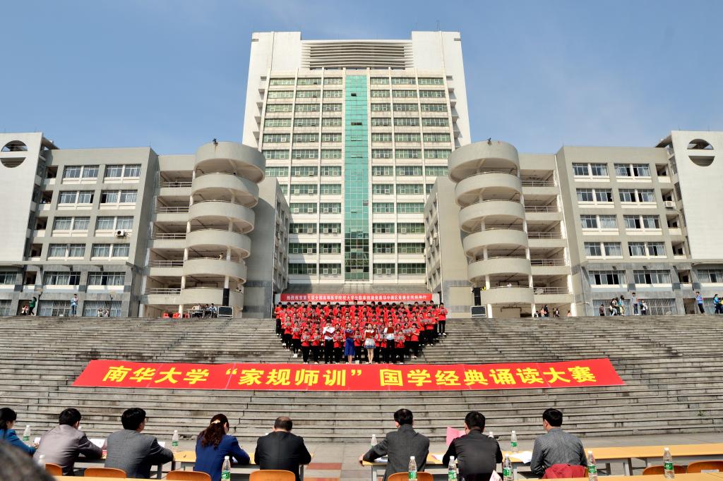 4月12日上午,南华大学首届“家规师训”国学经典诵读比赛在南华广场顺利举行,南华大学党委书记邹树梁、校长文格波等学校学院领导出席比赛,党委副书记彭建南老师,学工室主任任辉老师前往比赛场地为我院加油鼓劲。
