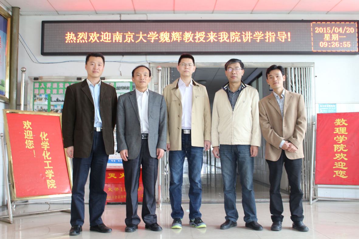 2015年4月20日上午,应南华大学“蒸湘学者”林英武教授邀请,南京大学现代工程与应用科学学院魏辉教授来我校进行学术访问,参观了南华大学蛋白质结构与功能实验室和ok138cn太阳集团,并做了“纳米模拟酶及其生物应用”精彩学术报告,与青年教师和研究生进行了学术讨论,会议由王宏青院长主持。魏辉教授2014 江苏省入选“双创计划”人才计划。其研究领域涉及生物纳米功能材料、生物纳米医学、体外诊断与个体化诊疗等,相关研究成果在Nature NanotechnologyChemical Society ReviewsAnalytical Chemistry等国际权威学术期刊上发表40篇余SCI论文,被引用2000余次,H-index为26。