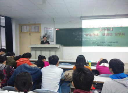 为增强同学们防火防盗等安全意识,树立讲诚信的良好品德,维持班级良好班风,化卓141班在11月14日下午,在9-401教室召开消防安全教育和诚信教育主题班会。化工卓越班23名同学全部参加,化卓班班主任彭建南老师亲临班会会场。班会由文浩同学主持。