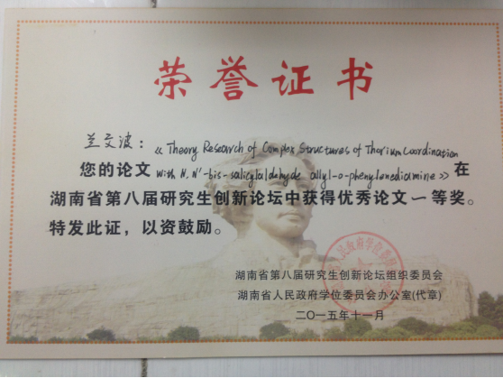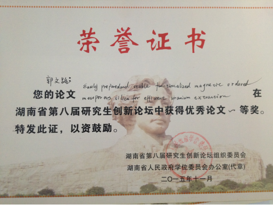 由湖南省人民政府学位委员会、湖南省教育厅主办的研究生创新论坛,经过论文筛选,专家的评定:ok138cn太阳集团喜获湖南省第八届研究生创新论坛优秀论文一等奖3篇,二等奖7篇,三等奖6篇等好成绩,其中聂长明教授指导的学生郭文路和兰文波以及刘慧君教授指导的学生荆鹏飞分别荣获优秀论文一等奖。