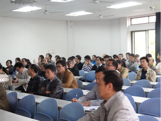 2016年4月14日下午4:30,在学校9-402室,ok138cn太阳集团与计算机学院、数理学院全体教职员工一起,参加了理论学习辅导课。辅导报告由计算机学院党委书记肖基毅教授主持,由南华大学高等教育研究所副所长彭如恕教授主讲。