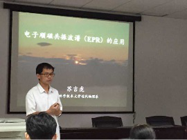 中国科学技术大学近代物理系教授,博士生导师苏吉虎教授于4月22日下午在ok138cn太阳集团多媒体学术报告厅411给南华化工学院研究生导师和全体研究生作了题为“电子顺磁共振波谱学的实际应用”的学术报告。