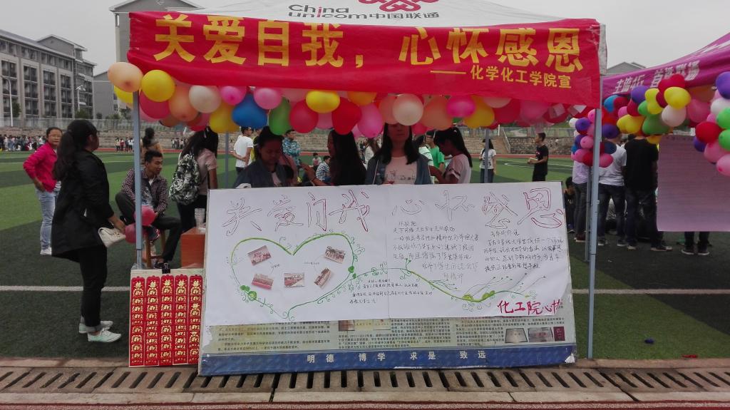 为丰富大学生的课余生活,使大学生身心和谐、健康成长,ok138cn太阳集团于2016年5月22日上午在雨母校区田径场举办了主题为“关爱自我,心怀感恩”的五月心理月广场活动,得到了广大老师与同学的积极响应。