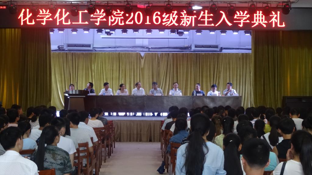 2016年9月1日,在南华大学雨母校区新食堂四楼,迎来了热闹而隆重的ok138cn太阳集团2016级新生开学典礼。出席典礼的领导有化工学院院长王宏青、党委书记聂长明、副书记彭建南、副院长刘慧君、林英武及教师代表。本次开学典礼由聂书记主持。