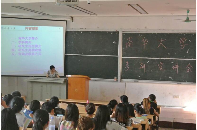 刘慧君教授对有志报考我校化学化工类专业硕士研究生的学生进行招生宣讲,介绍了我校概况和学院的办学特色、师资力量、研究生奖助政策等情况,对研究生培养目标与方案、学科优势与平台、科研方向与特色以及研究生报考的注意事项等进行了详细的说明。聂长明教授进行了补充说明,进一步富有激情地讲解了我院的师资优势和优秀毕业生等情况,特别举例说明了从该校考入南华大学的周丛艺、侯丹等同学的出色表现,其中周丛艺在南华大学读研期间发表SCI收录论文5篇,一区论文1篇,毕业后直接赴美国University of Montana攻读博士学位。聂长明教授充满信心的号召同学们报考我院硕士研究生,报考ok138cn太阳集团,这将是人生一个正确的选择。肖新荣教授还详细地向有兴趣的同学们介绍了南华大学制药工程专业。为使同学们更加了解ok138cn太阳集团和志愿报考,宣讲老师们还向同学们分发了精心制作的2017年ok138cn太阳集团硕士研究生招生简介宣传单。