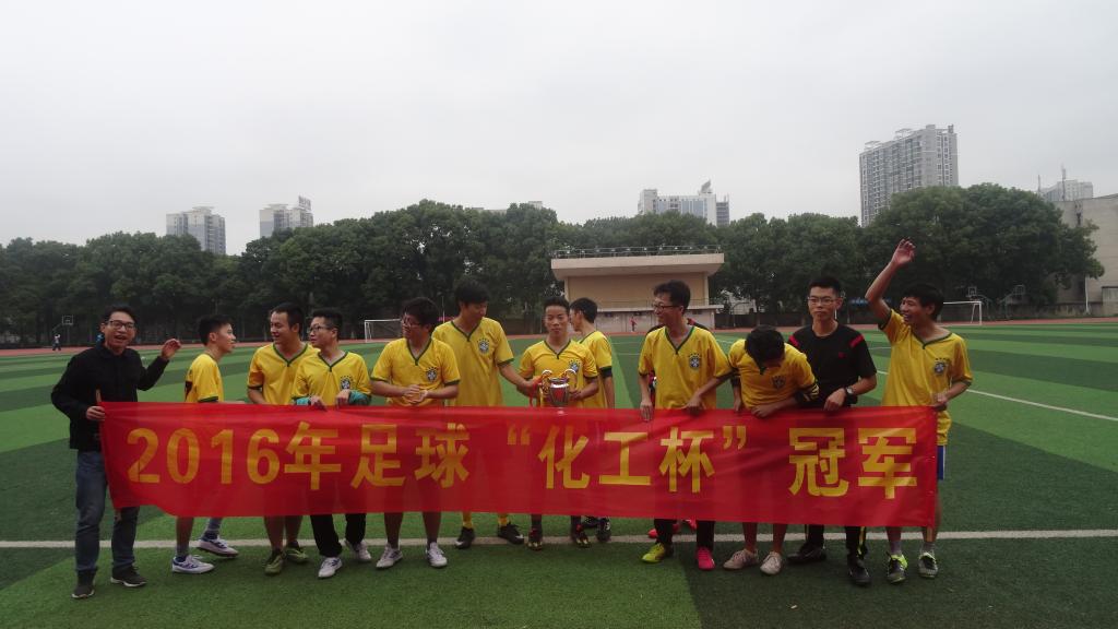 足球场上比赛热火朝天的进行着,各个队员斗志昂扬,势要拿下今天这场比赛。双方你来我往,进攻防守毫不含糊。只见大四10号队员抓住对面一丝破绽,毫不留情连过两人直射入门,拿下今天第一球!大大增加了大四球队的士气,终于在上半场结束之前再进一球,以2:0的战绩领先大三队。下半场开始,大三队顶着压力奋起直追,每一个球都毫不留情,奈何大四队守门员将门守得密不透风,最后以1:6的分数惨输给大四队。大四队则拿下了第一届的“化工杯”的冠军。