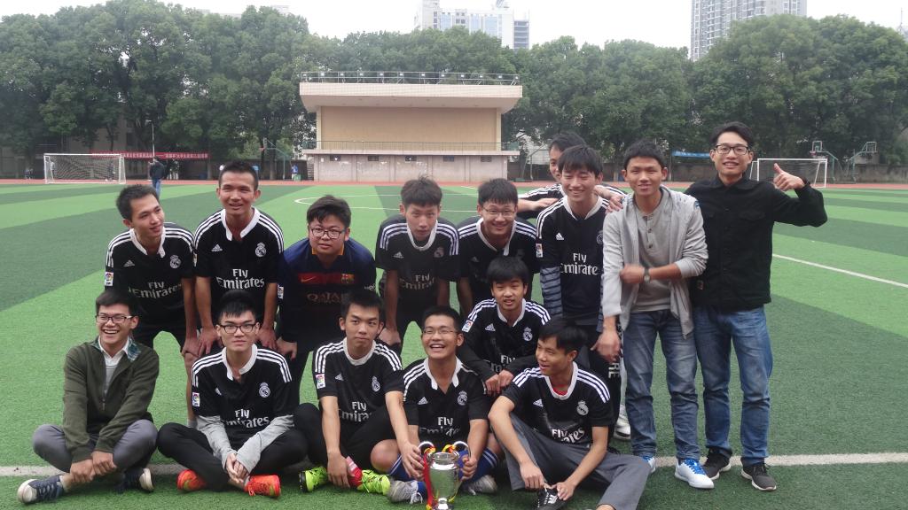 最后由蒋剑红老师给获得冠军的队伍颁发奖杯,大家进行合影留念。事后采访一位大三队的队员,他说道:“并不会因为失败而气馁,我们会一直加油,他们是一只实力很强的队伍,希望以后还能和他们一起踢球。我们会努力,希望我们的球队会走得更远·······”