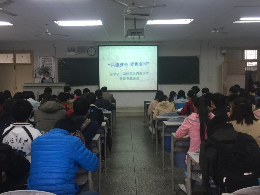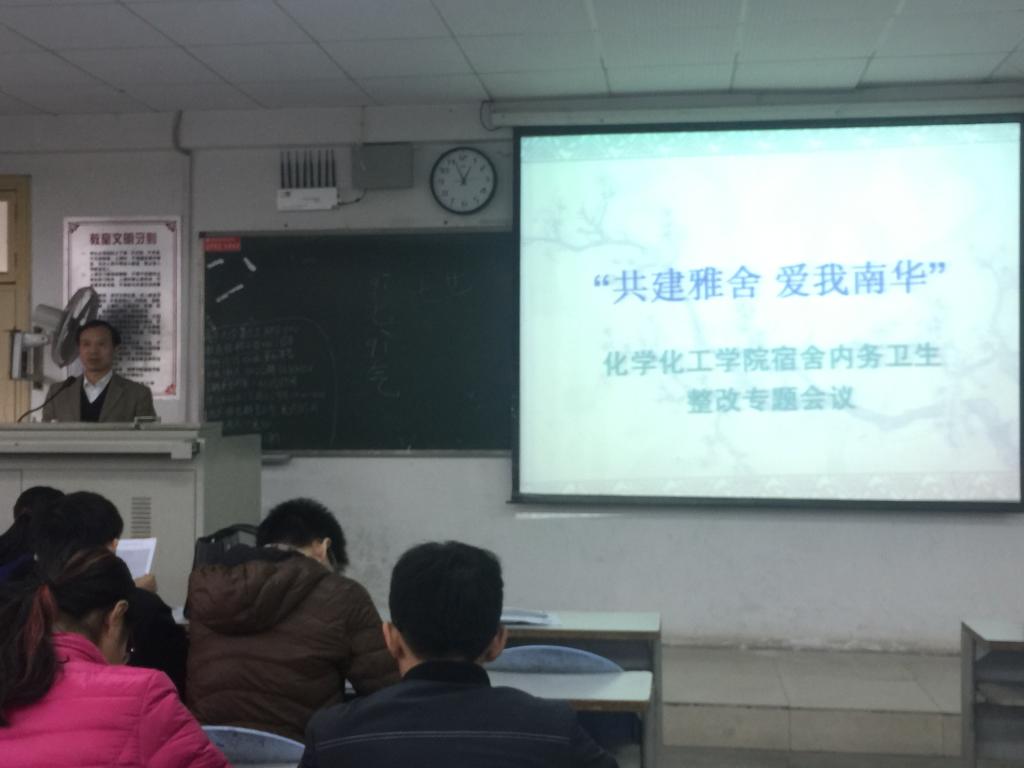 2016年11月23日中午,我院党委副书记彭建南、15级年级辅导员蒋剑红携主席团干部和所有的寝室长们在红湘校区第九教学楼411召开了内务卫生整改专题会议。会上,首先由蒋老师一一指出了各个寝室有待整改的地方,并提出更具体更细化的寝室卫生文明要求。随后,彭书记郑重的给大家分析与强调我院寝室卫生杂乱的现状,并一再指出文明修身的重要性及以身作则的必要性。大家也对彭书记提出的要求表示了积极的响应。
