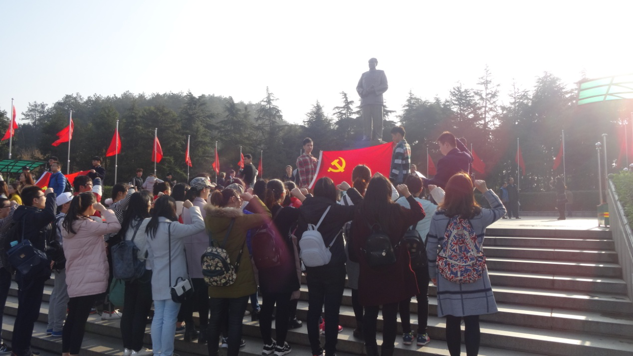 大家一同乘车来到第一站宁乡县参观刘少奇同志铜像及故居。参观完后,全体党员前往第二站毛泽东故乡---韶山,在毛泽东铜像广场,面对毛泽东同志铜像,全部党员排队站在台阶上,在老师的主持下,党员们持立正姿势,面向党旗,举右手握拳庄严宣誓,“我志愿加入中国共产党,拥护党的纲领、遵守党的章程……”,铿锵有力的誓词响彻整个广场。随后全体党员对毛泽东铜像三鞠躬以表示对主席的敬仰和哀思;围绕毛主席铜像绕一周,瞻仰主席的光辉风采。之后参观了毛泽东同志纪念馆及毛泽东故居,深刻缅怀毛主席的丰功伟绩 。