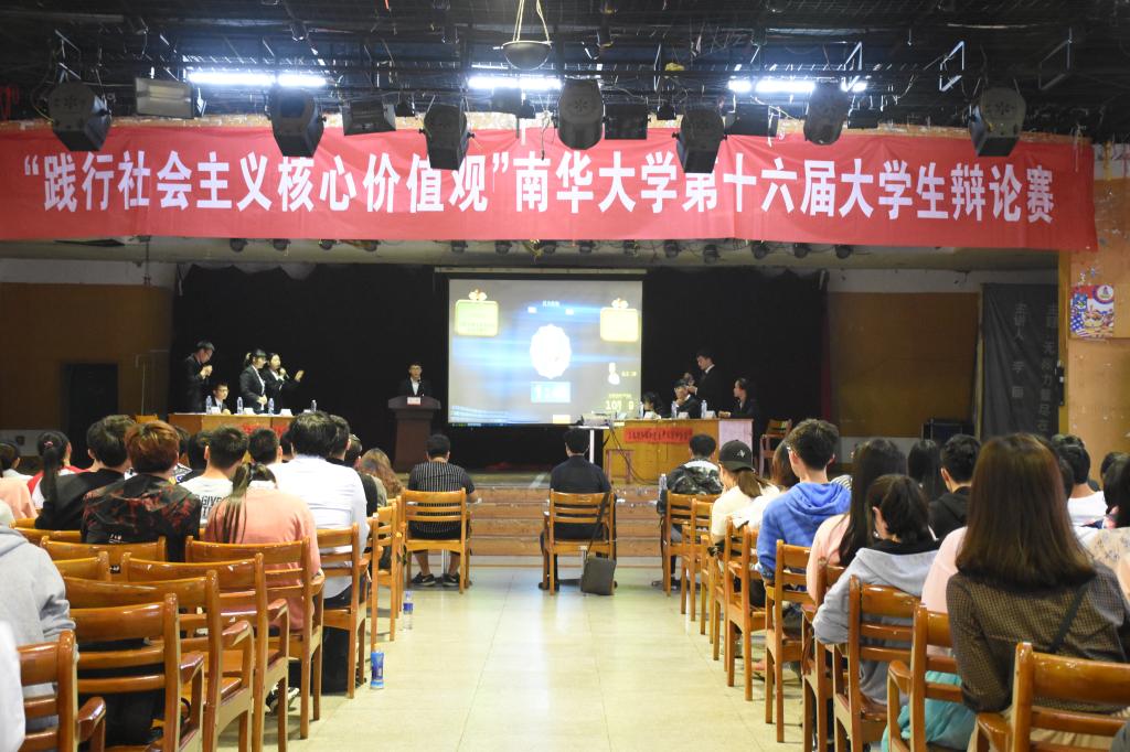 4月15日下午,为传承中华民族传统文化,“为践行社会主义核心价值观”南华大学第十六届大学生辩论赛于南华大学红湘校区北校活动中心举行。本次比赛由共青团南华大学委员会、南华大学学生会主办,南华大学学生会宣传部承办。