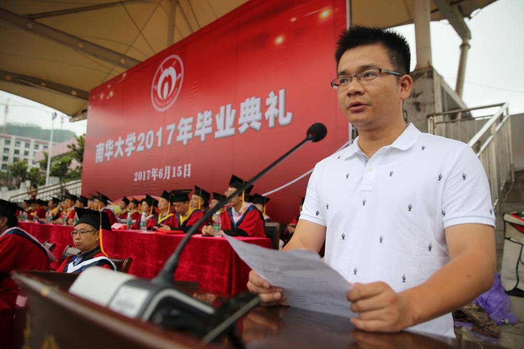 今天,我非常荣幸回到母校南华大学,代表校友在毕业典礼上发言。12年前,在南华美丽的校园,我度过了4年充实美好的时光,是南华大学教给了我走向社会的知识和自信,在此,请让我代表学弟学妹们向恩师们道一声最诚挚的感谢,您们辛苦了!