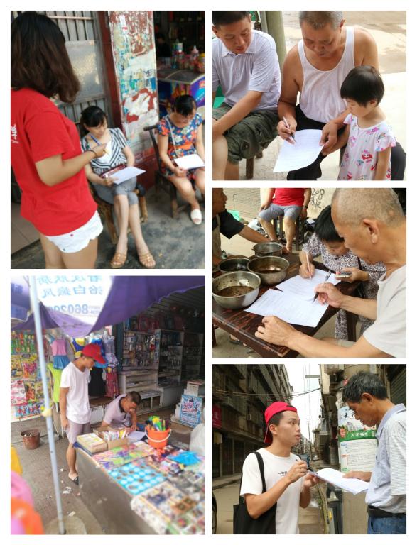 7月10日,南华大学化工学院和广州大学华软软件学院财会系的所有志愿者分为义教组和调研组。由南华大学学生王策和广州大学学生项剑宇带领的调研团在水口山镇走街串巷,挨家挨户地到当地居民家中进行深入访谈,并向当地居民询问近几十年水口山镇的情况,调研有关于水口山镇的工业发展、环境变化和生活水平。