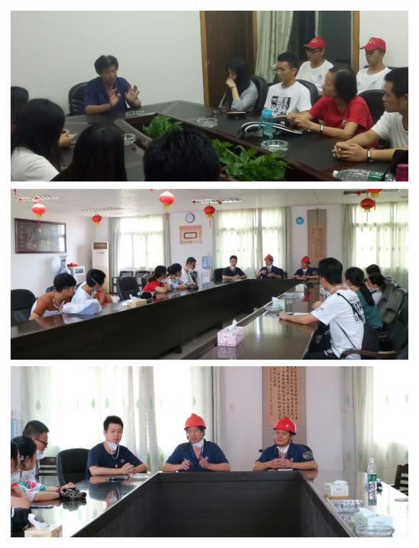 傍晚,在机关安环会议室,志愿者们听取了水口山有色金属集团有限公司安环部门副部长李强对工厂作业及生活中的安全措施的报告,为第二天参观工厂做好准备。