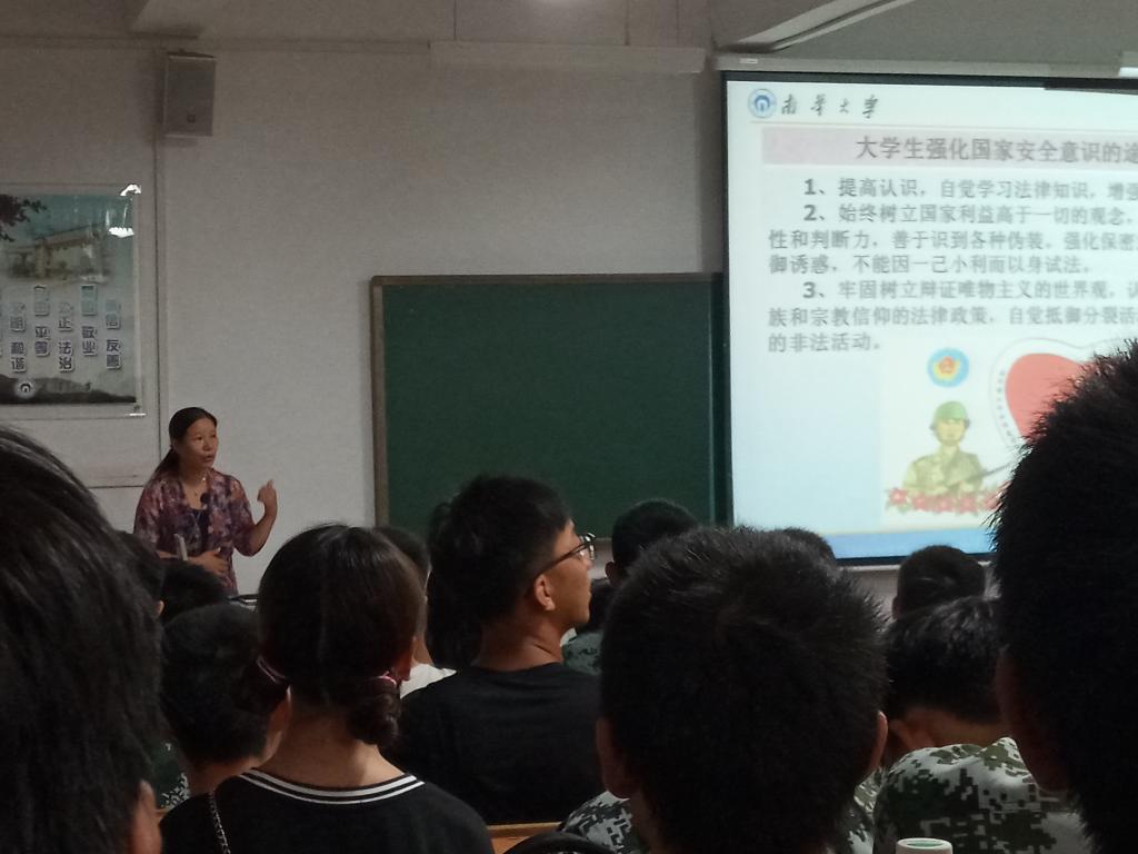 9月5日晚,二团三营一连的安全教育活动在南华大学雨母校区逸夫科技楼102课室顺利召开。本次活动以“安全不放松,时刻敲响警钟”为主题,由廖迎春老师主讲,分别从国家安全、人身财产安全、消防安全和交通安全四个方面进行了讲解。