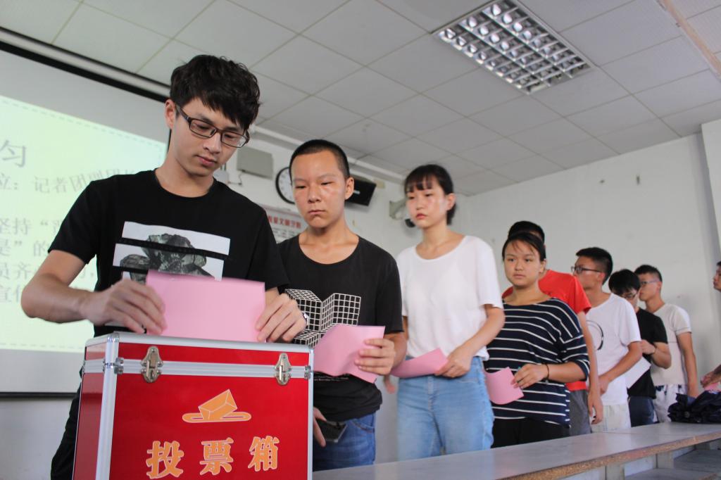 9月14日下午,ok138cn太阳集团第十七届团委学生会干部换届选举大会于第九教学楼401教室隆重召开。ok138cn太阳集团学工室主任陈楠、团委书记李睿、第十六届主席团成员、75位参与投票的正式代表以及45位参加此次选举的候选人出席了本次盛会。