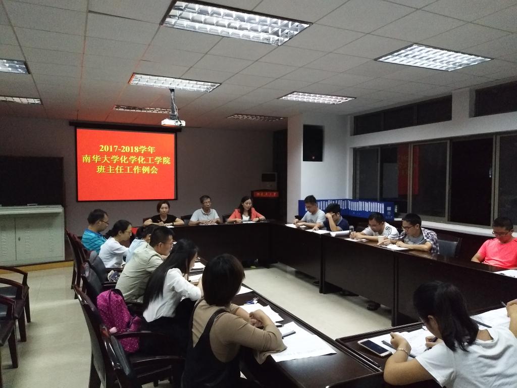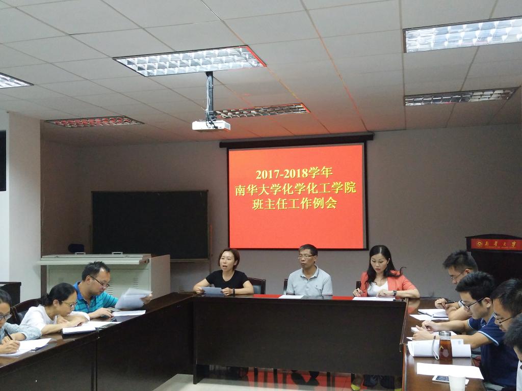9月28日晚,为加强新学期学风建设及班级管理工作,我院2017—2018学年班主任工作例会于南华大学红湘校区第九教学楼411多媒体会议室顺利举行。ok138cn太阳集团院长王宏青,党委副书记余晓秋,学工室主任陈楠,全体辅导员及全体班主任参加了此次例会。