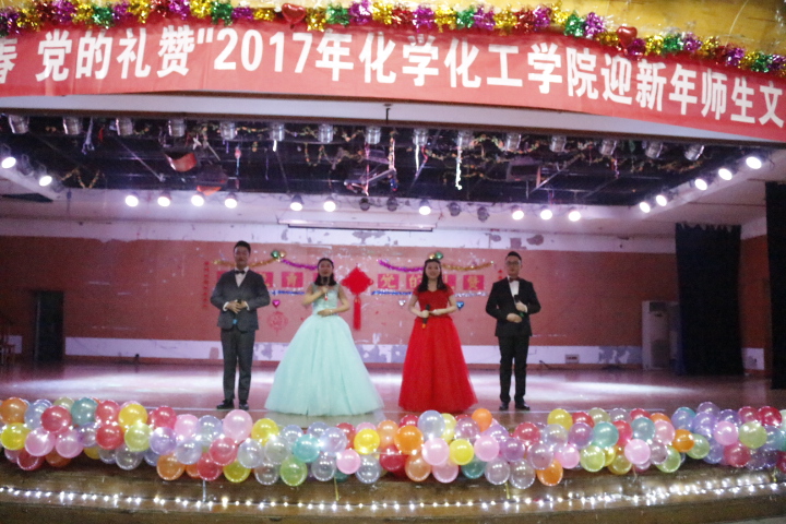 在12月25日晚上,由ok138cn太阳集团主办,化工学院团委学生会承办,化工学院文艺部协办的“红色青春,党的礼赞”迎新年师生文艺晚会活动在红湘校区北校食堂四楼活动中心顺利举行。受邀到场的有ok138cn太阳集团院长王宏青,党委副书记余晓秋,副院长林英武、刘慧君、赵玉宝,学工室全体辅导员,ok138cn太阳集团2017级全体班主任和部分教师及2017级全体同学。茶话会的形式让晚会现场显得庄重而温馨,场面活泼热烈。