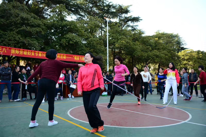 为了庆祝“三八”国际劳动妇女节,增强女教职工体质,培养女教职工自强进取的拼搏精神,展示各学院团队协作的精神风貌,3月10日下午,校工会举行了“绳彩飞扬”集体跳绳比赛。ok138cn太阳集团林英武书记和余晓秋副书记带领化工学院的女教职工参加了此次比赛。