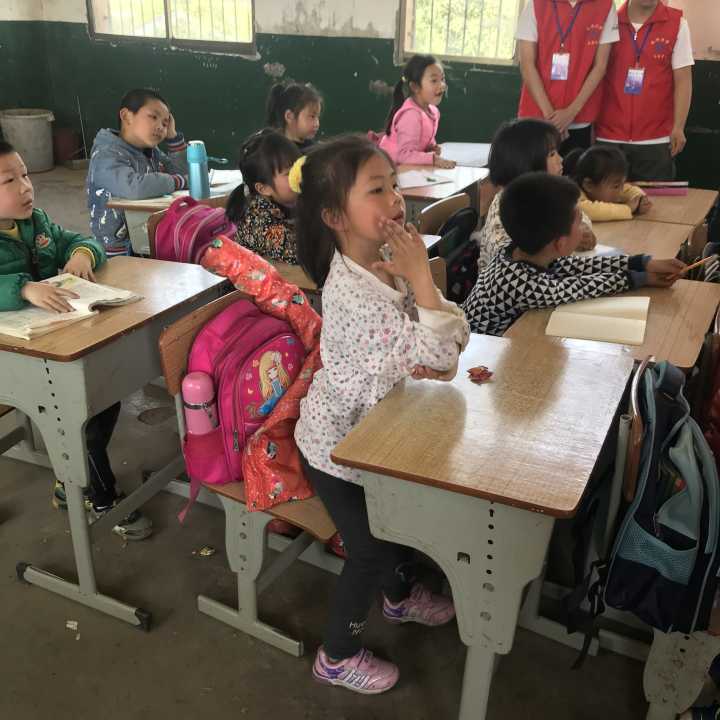 环保主题班会结束后,志愿者们自愿承担起维护教室秩序的工作,用奖励的方式鼓励学生们背古诗和表演才艺,并与学生们一起唱儿歌,场面十分活跃温馨。