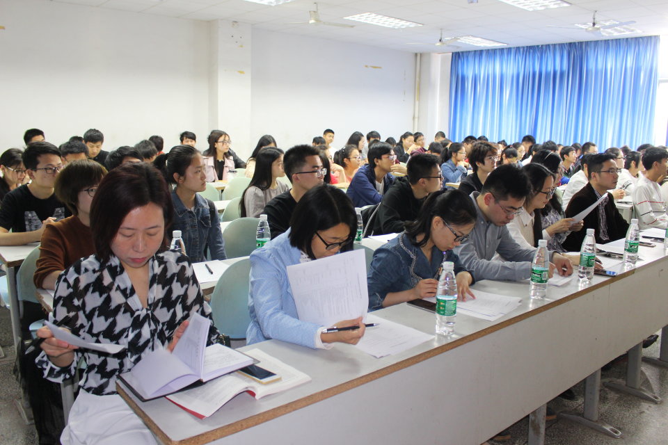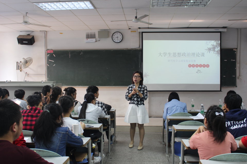4月28日上午,“南华大学2016级大学生学习贯彻习近平新时代中国特色社会主义思想暨第四届大学生思想政治理论课研究性学习成果展示竞赛”预决赛ok138cn太阳集团分赛在南华大学紅湘校区第九教学楼403课室正式举行。本次比赛的目的是为深入学习宣传党的十九大精神及全国两会精神,贯彻落实全国、全省思想政治工作会议精神,推动习近平新时代中国特色社会主义思想的“三进”工作 ,进一步激发大学生的理论学习积极性,加大思想政治理论课教学方法改革力度,提高思想政治理论课教学实效性。参与此次竞赛评选的嘉宾有ok138cn太阳集团党委副书记余晓秋、马克思主义学院形势与政策教研室张俊波博士、以及ok138cn太阳集团学工室主任陈楠和ok138cn太阳集团16级各班的班主任们。此次竞赛主要通过选题原因、研究现状综述、研究性学习成果、研究中存在的问题以及研究设想、研究性学习的收获与体会这五个方面来进行展示。来自16级代表各班参赛的五名同学通过PPT展示对各方面内容依次进行介绍。介绍结束之后,评委嘉宾针对同学们展示研究内容展开提问,各小组成员应对所提问题进行详细阐述。在此次竞赛评选中,党委副书记余晓秋和张俊波博士对各参赛队伍表示了赞赏与肯定。