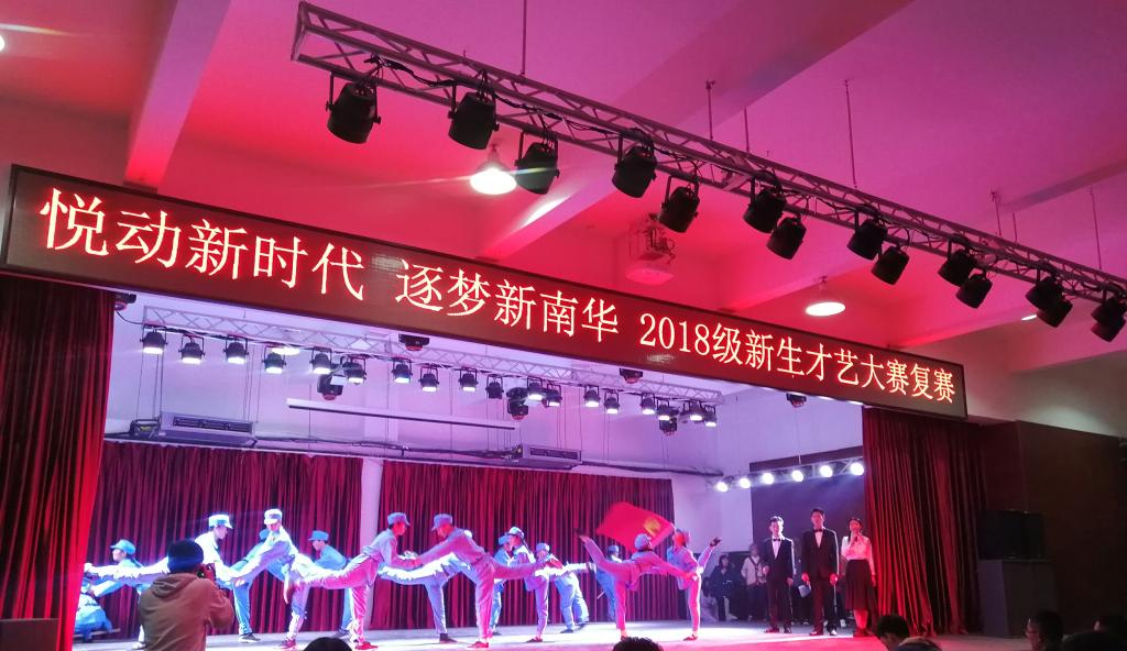 11月10日晚,由共青团南华大学委员会主办,南华大学学生会承办的“悦动新时代 逐梦新南华”2018级新生才艺大赛复赛在雨母校区笃行园食堂四楼成功举行。