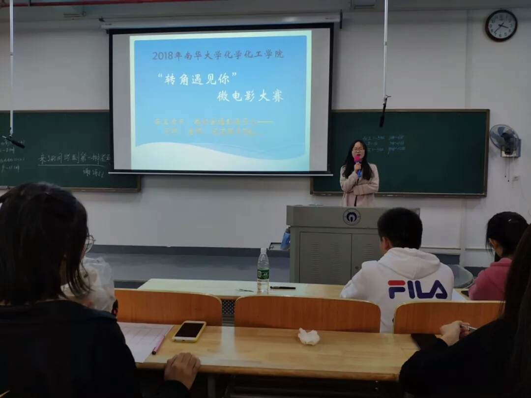 11月25号下午,由南华大学学生工作部,共青团南华大学委员会,南华大学学生会联合主办,ok138cn太阳集团心理部协办的转角遇见“你”微电影大赛评选活动在雨母校区雨母楼101教室顺利举行。此次大赛由我院团委书记颜晔,18级辅导员伍桂龙,16级李亮、蒋桢桢、杨荣、彭文嫣同学,17级杨鑫、胡林、孙旭东、刘校、邹宇明、郑晓雪、谭玉红、郭誉鸿、吴晓岩、谭浩、薛明月同学担任评审嘉宾,由18级赵彪、李澜静同学主持本次比赛,此外还有150余名大一学生观看比赛。