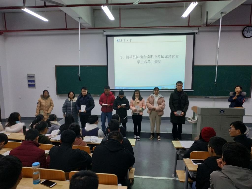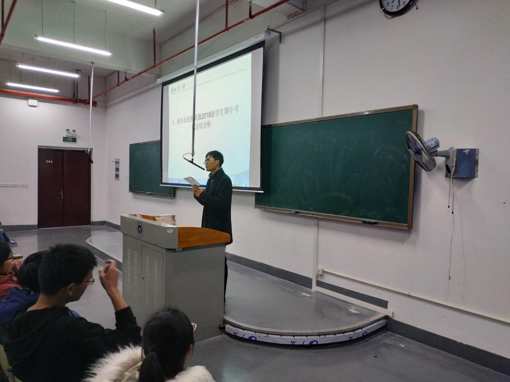 随后,学工室主任陈楠对期中考试中表现优异的同学进行了表彰,对同学们反映的几个问题,主要就人际关系的处理和部门与学习的协调的几个方面进行了解答,改善了学生的心理状态。会议最后,副书记余晓秋对学生取得成绩的认可与肯定,从四个回归(回归常识、回归本分、回归初心、回归梦想),结合现实实例,对大学生的创新自主做出了积极的引导,也对大学生的本职做出详细的要求,要对考风考纪严抓,对考试违纪行为严打,从其言语中体现出了对学生的殷切期望。