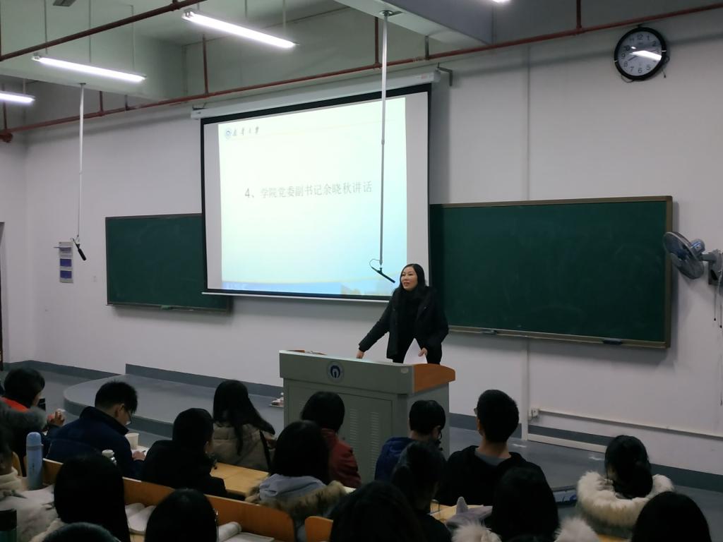 12月12日晚,ok138cn太阳集团在雨母校区雨母楼召开了18级学生总结表彰暨考风动员大会。会议到场领导有:党委副书记余晓秋、学工室主任陈楠、团委书记颜晔、18级辅导员伍桂龙,此次会议由学生会主席李亮主持。