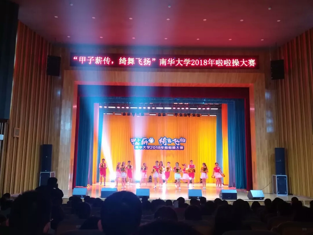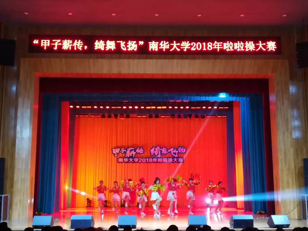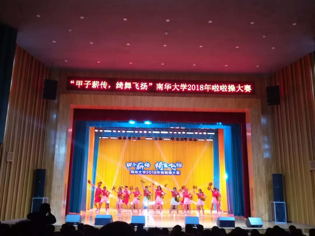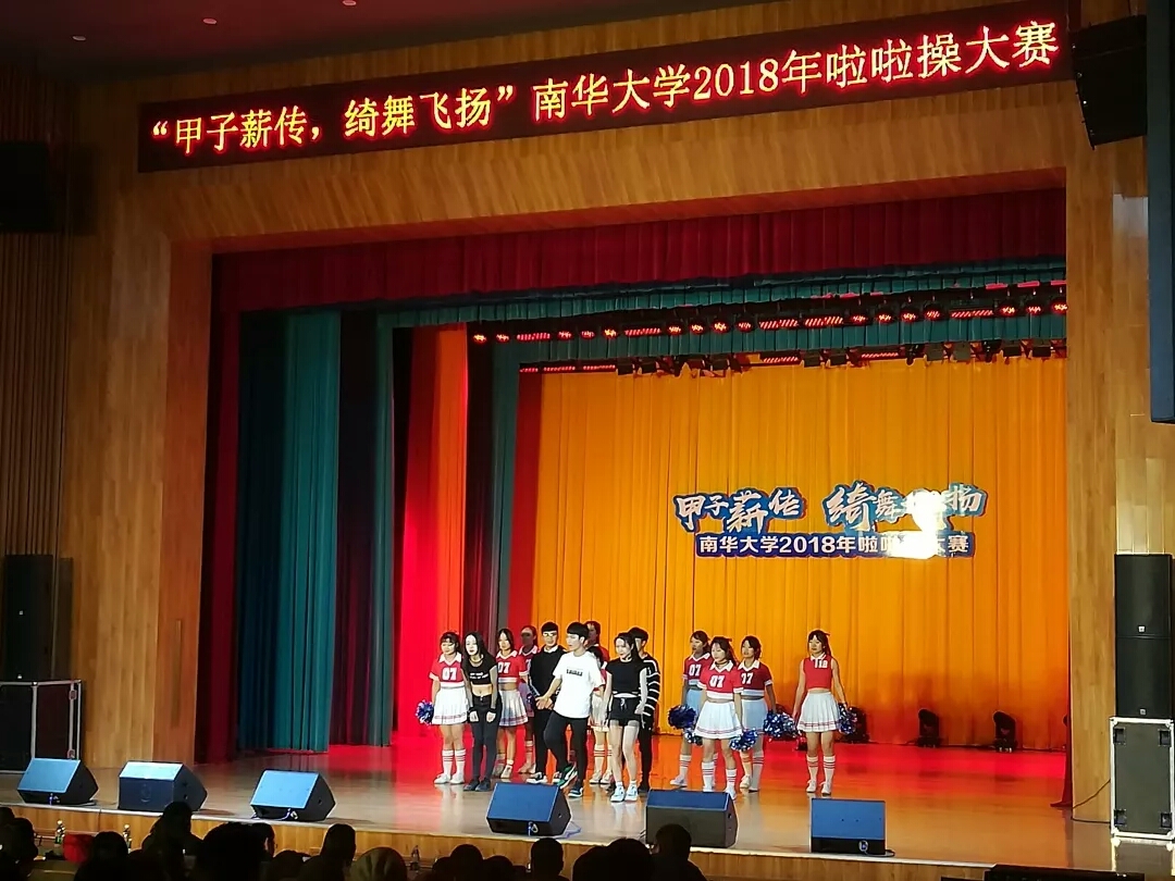 12月15日,“甲子薪传,绮舞飞扬”南华大学2018年啦啦操大赛在南华大学红湘校区南校大礼堂隆重举行,17支来自不同学院的优秀队伍云聚于此,大显身手。
