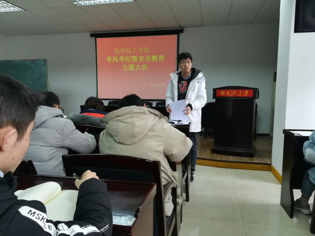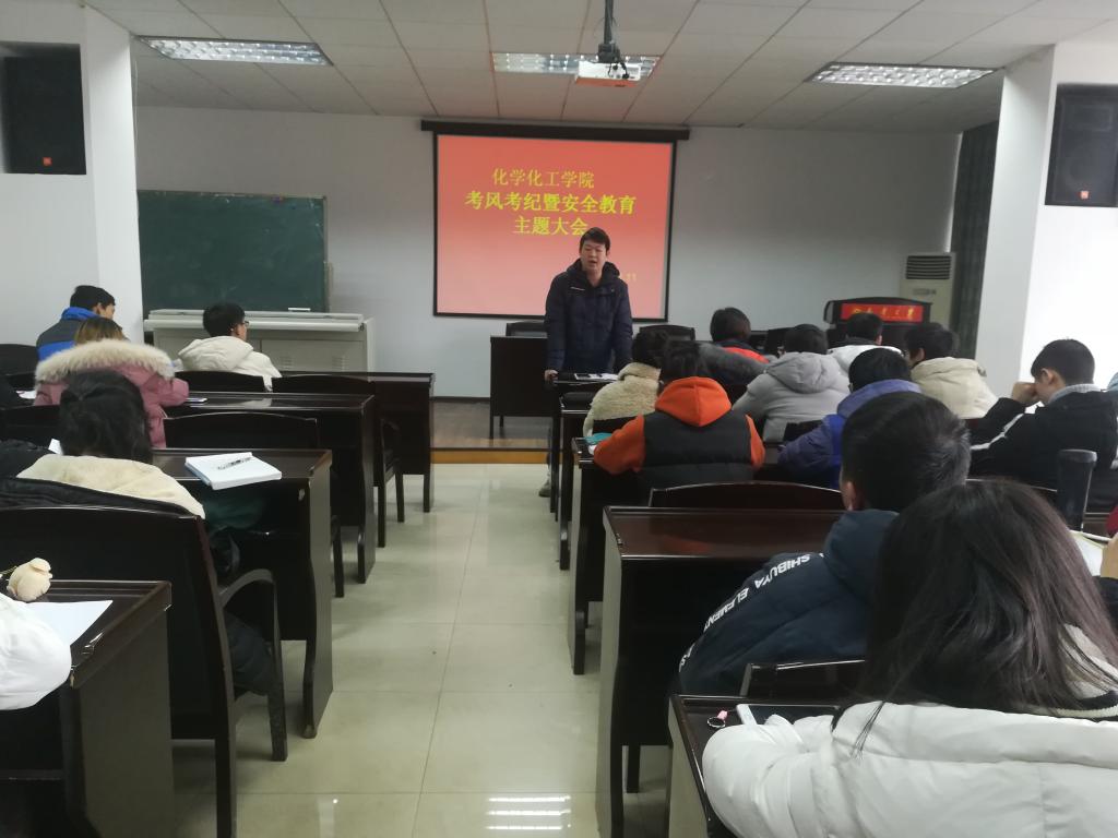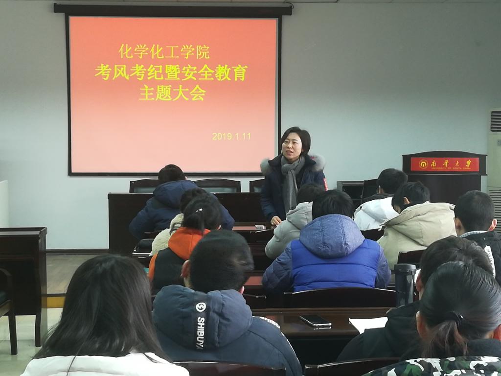 1月11日,我院于九教411学术报告厅召开考风考纪暨安全教育主题大会,院学工室主任陈楠,17级学生辅导员李睿以及16级,17级各班班长、团支书参加此次会议,由团委书记颜晔主持此次会议。