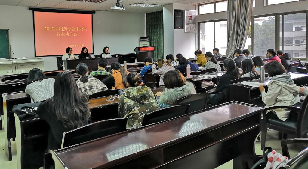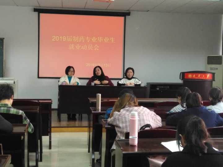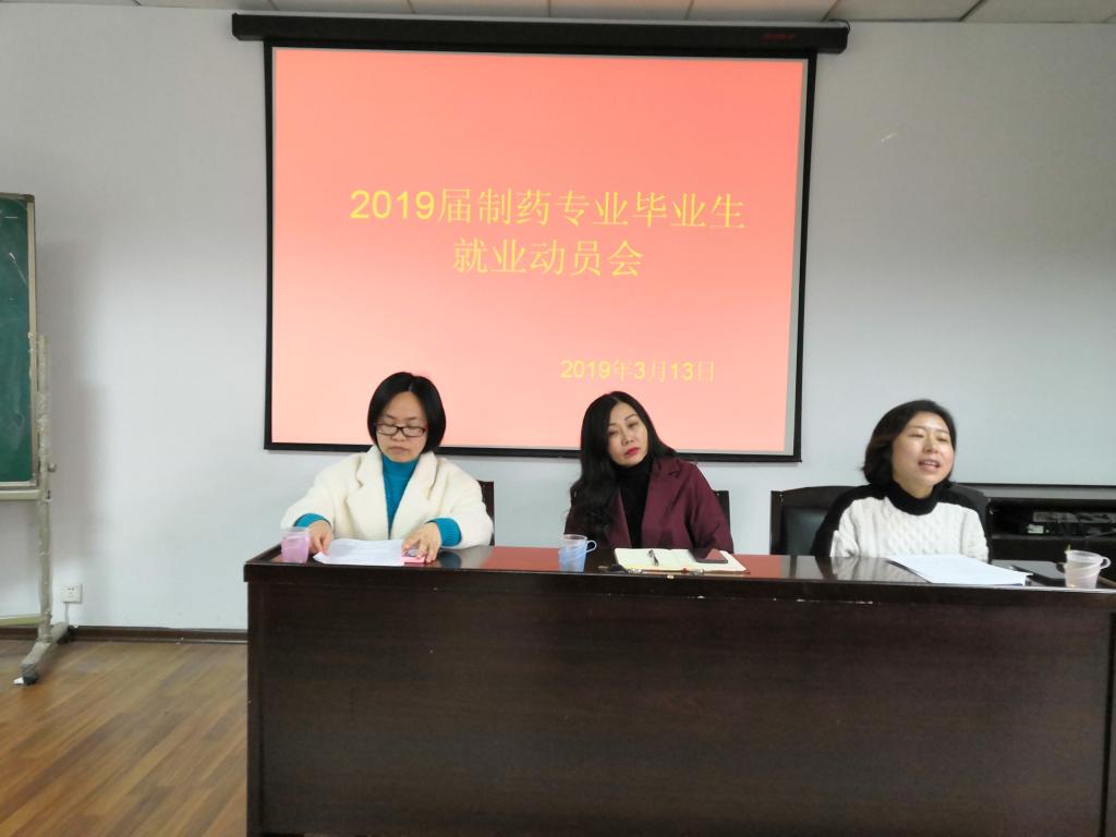 3月13日,我院于第九教学楼411学术报告厅召开2019届制药专业毕业生就业动员会,我院党委副书记余晓秋,制药工程系主任武亚新,15级制药工程部分学生参加此次会议。会议由学工室主任陈楠主持,旨在动员制药专业未就业的学生在16日的春季校园专场招聘会上抓住好相应的机会,保障自己的就业情况。