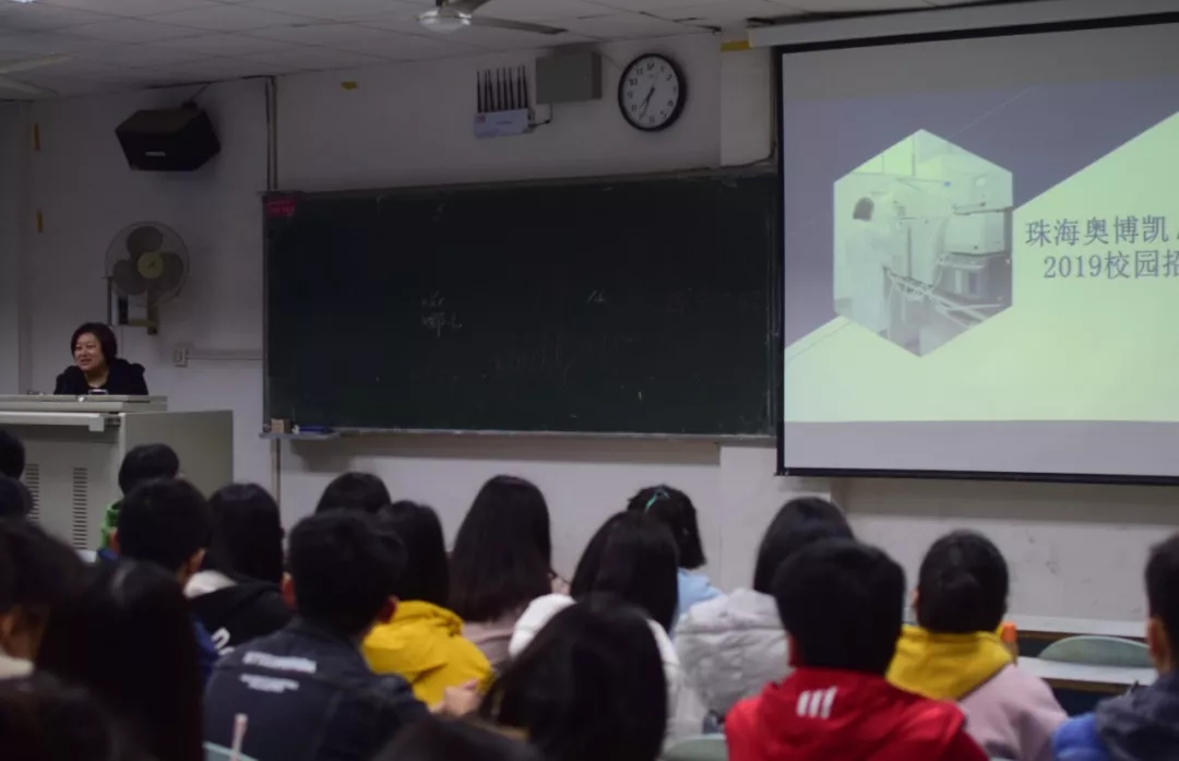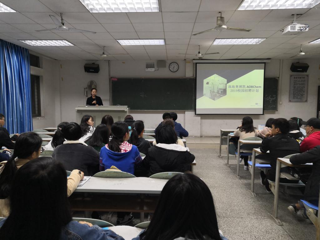 晚上,我院于九教403召开了珠海奥博凯生物医药技术有限公司的宣讲会。由公司招聘人员杨总向参加宣讲会的学生介绍了公司的有关情况与优势。接着介绍了公司往年的招聘情况以及对人才培养的优质机制,以及对同学未来的发展提供的良好条件。接着向学生们表明了公司想要招聘的三个岗位一共150名工作人员:实习实验员,招聘化学,药学相关专业在读大三学生,大四毕业学生,要求对实验有浓厚兴趣。有机合成实验人员,主要进行合成有机产品。化学分析人员,负责分析和开发工作。招聘人员友好的询问了同学理想的工作城市,并向同学介绍了珠海的高幸福感生活。也为在场同学解答了他们的问题,解答了同学们心中的疑虑。本次招聘会为学校应届毕业生和用人单位搭建了有效的交流桥梁,有利于帮助毕业生认清自己,完善自己,找到适合自己的工作。学院今后将继续利用资源,展现优势,把招聘单位“请进来”,让优秀学生“走出去”,帮助优质企业选到人才,帮助青年学生找好平台,实现学生的快速、安全、优质就业。