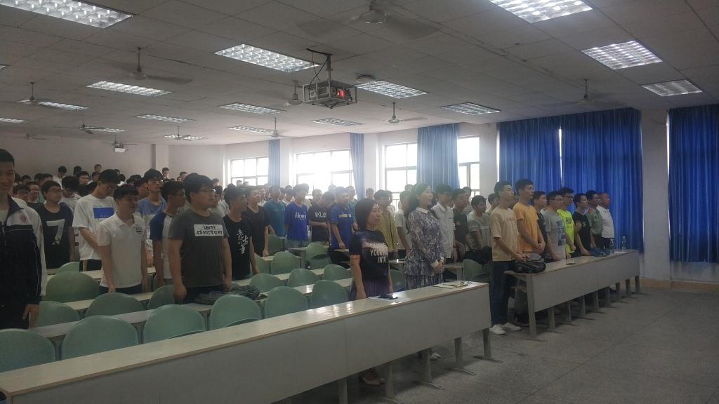 大会上,首先大家全体起立,齐唱国歌。国歌结束后,由汪先利老师作征兵宣传讲座,对大学生征兵工作进行了政策解读,对学习、就业、经济补助等方面政策进行了详细的解释说明。他还指出,在部队大熔炉里,既可以锻炼当代大学生的家国情怀、责任担当、勇挑重担、吃苦耐劳的意志品质,又可以培养锐意创新、与时俱进、勤奋学习、勇创一流的精神风貌;既可以光荣就业,体验部队生活,丰富人生经历,又有助于养成雷厉风行、严谨细致的工作作风。接着李睿发表讲话,讲到参军入伍是每一位公民应尽的责任与义务。就大学生而言,参军更是一件有荣光的可喜之事。会议最后,杨柳松为大家分享了自己的军营生活,号召大家积极参与征兵报名,为祖国的国防事业做出自己的一份贡献。