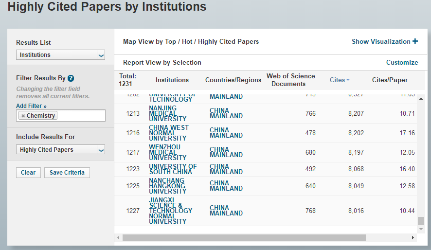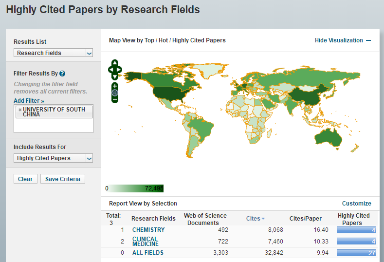 据统计,全球共有1231所高校及科研机构进入ESI化学学科世界前1%行列,我校化学学科的国际排名为第1223位,标志着其在国际上已具有较高的学术影响力。在过去10年中该学科被ESI系统收录论文492篇,累计被引次数8068次,篇均被引频次16.40次,其中有4篇论文入选ESI高被引论文。