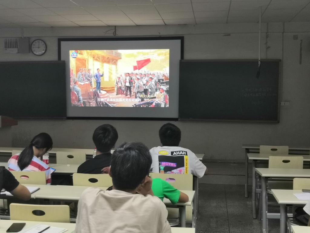 为开展“不忘初心,牢记使命”主题教育,同时为庆祝新中国成立70周年,向在校学生宣传爱国主义精神,ok138cn太阳集团团委书记颜晔于9月23日在南华大学红湘校区第九教学楼403带领第十九届团委学生会干部观看了影片《我们走在大路上--新中国的诞生》。