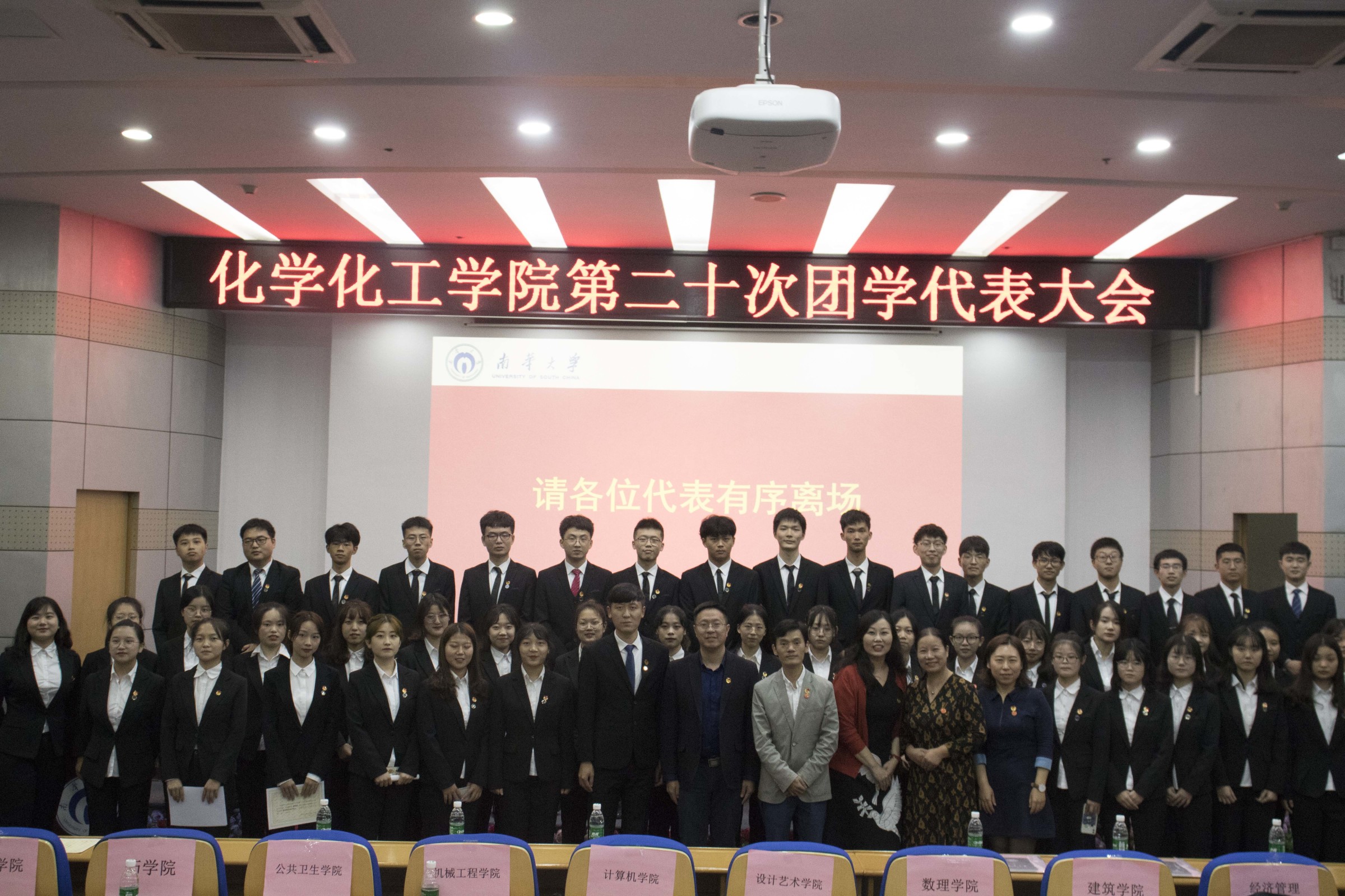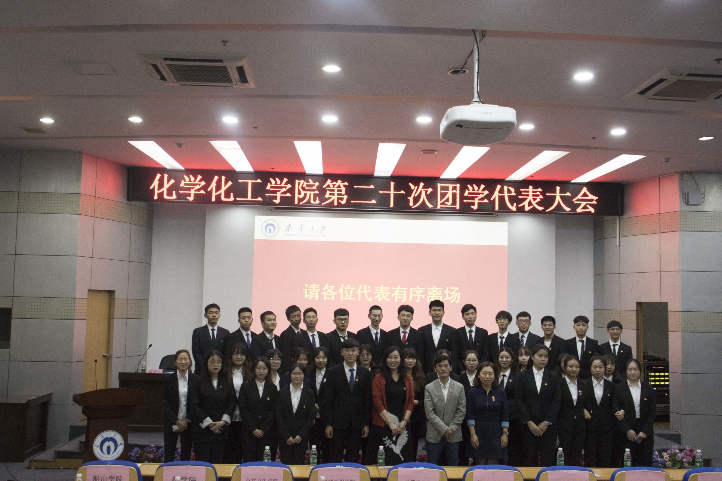 会议最后,全体奏唱共青团团歌,欢送领导、嘉宾及代表离场。第十九届、二十届团学干部合影留念,化工精神将会在新一届团委、学生会的工作中继续传承与弘扬。