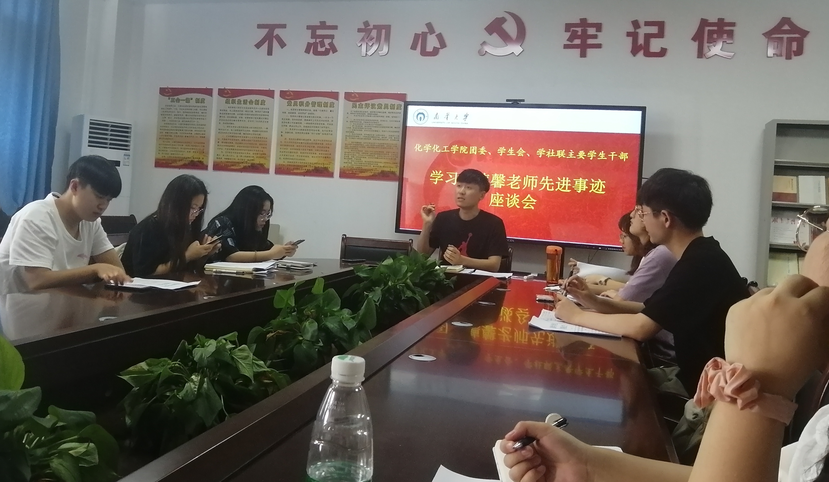 座谈会伊始,在通过观看《湖湘师表·丁德馨:不忘初心的引路人》丁德馨老师先进事迹视频,同学们了解到,丁德馨老师多年来在不断与命运抗争、与病魔斗争,即使病痛交加依然不忘科研,即使中风在床依然不忘指导学生。他锐意创新、积极进取,攻克了一个又一个铀矿采冶技术难题,为我国国防科技工业与核工业做出了突出贡献。”