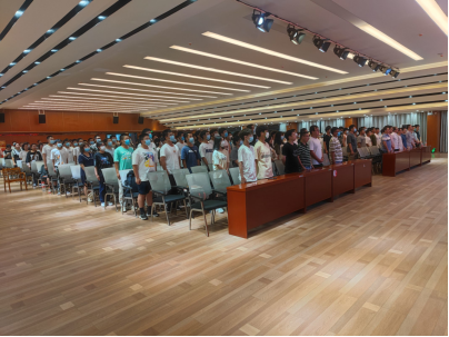 全体新生齐唱校歌,坚持秉承“明德、博学、求是、致远”的校训,共创未来新篇章。