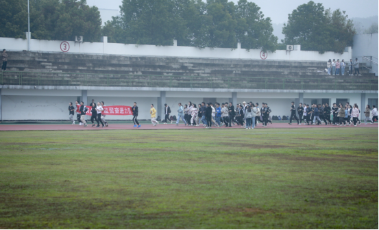 初晨的凉意丝丝入骨,却也无法阻止同学们热切的心情。7点15分,各班人员井然有序,按指定地点站好队形。伴随着激昂的音乐,晨跑拉开了序幕。同学们迈着坚毅的步伐向前奔跑,活力、热情点燃了静谧的操场,有序、整齐的队伍彰显着我院的青春活力与蓬勃朝气。