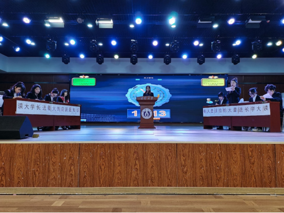决赛中,来自正方的化工与制药类2203班和反方的材料类2202班就“读大学长进最大的应该是知识还是人格”这一辩题展开了激烈辩论,辩手们能言善辩、各展风采,现场气氛热烈、掌声不断。