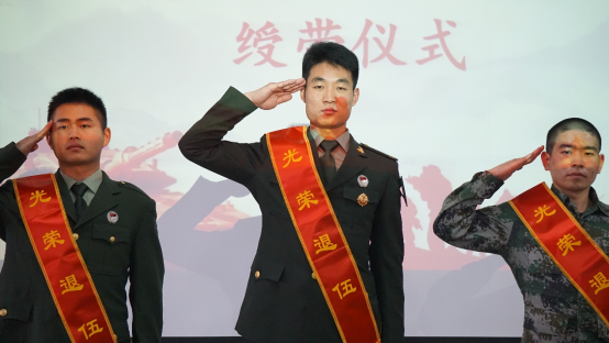 绶带仪式中,汪先利为林文斌、王志远、喻江浩三名退伍大学生颁发“光荣退伍”绶带,余晓秋为他们颁发纪念品。退伍大学生代表喻江浩进行发言,他分享了自己的军旅生活,感谢部队带给自己宝贵的经验与难忘的经历,表示会把在部队的好传统、好作风、好习惯带到校园中,用自己的实际行动创造更好的成绩。