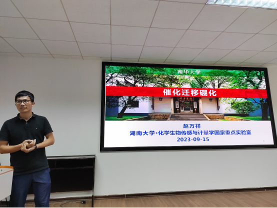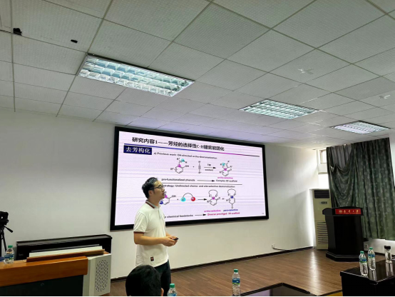 本次交流报告会会场座无虚席,在场教师和同学们都认真聆听了每个专家在各自领域的学术成果。报告会上刘路教授介绍他们组在发展高化学、区域、对映选择性反应,精准对一些惰性化学键进行激活与重组方面的一系列工作成果;赵万祥教授以目前含硼有机分子面临的问题为切入点,从化学选择性(包括区域选择性和立体选择性)差、反应步骤长和副产物多等问题展开,重点讲解了团队如何通过配体以及底物设计,精确调控反应的区域选择性以及立体选择性,实现一些具有重要合成价值的有机硼化合物合成的新途径;李文博副教授就首先介绍了核磁共振波谱在合成及材料化学中的重要应用,并就吡格列酮类化合物在核磁谱图的解析作了详细的分析。随后进行现场提问环节,老师和同学们踊跃提出了自己的疑问,刘路教授,赵万祥教授和李文博副教授耐心解答,大家收获满满。