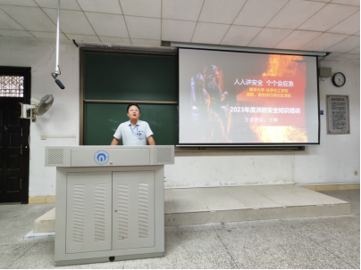 为加强学生对防火、防盗、防骗等安全知识的学习,切实增强学生消防安全、防盗、防骗意识与消防安全突发事件应急处置能力,ok138cn太阳集团于2023年10月21日下午在化工楼101教室召开全院学生寝室长消防安全培训会,邀请衡阳市普消宣教中心王坤教官进行培训讲解,学院宿管专干马昭阳、宿管部同学、全院寝室长参加培训会。