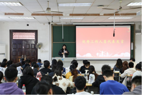 为了表彰大运会期间表现优秀的运动员和工作人员,ok138cn太阳集团于11月22日在化工楼401教室召开2023年大学生田径运动会表彰大会。ok138cn太阳集团党委副书记余晓秋及学工室全体辅导员出席大会,大运会运动员和工作人员代表150余名同学参加大会,会议由学院团委书记马昭阳主持。