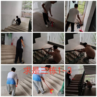 活动当天,在宿舍公共区域清理时,同学们手持劳动工具,分工明确,彻底清扫卫生死角,清除生活垃圾、杂物、破旧废弃物品,打扫宿舍阳台、走廊、楼道等区域。在清扫过程中,同学们默契配合,互相帮助,不仅提升了宿舍的卫生水平,还增进了彼此之间的友谊。