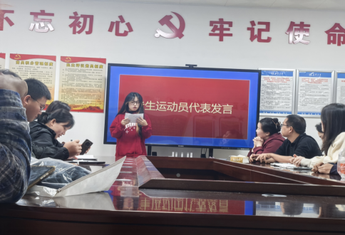 会议开始,主持人吴雅琳介绍了我院往届大运会取得的各项荣誉和大运会训练情况,。