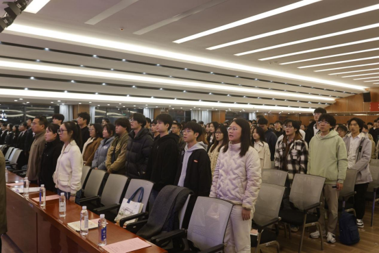 第二十四届团委、学生会主席张承霖宣读倡议书,“听党话,跟党走,强化价值引领,团结群众,争做学生友,不做学生官”把握历史使命,扛起时代重任。